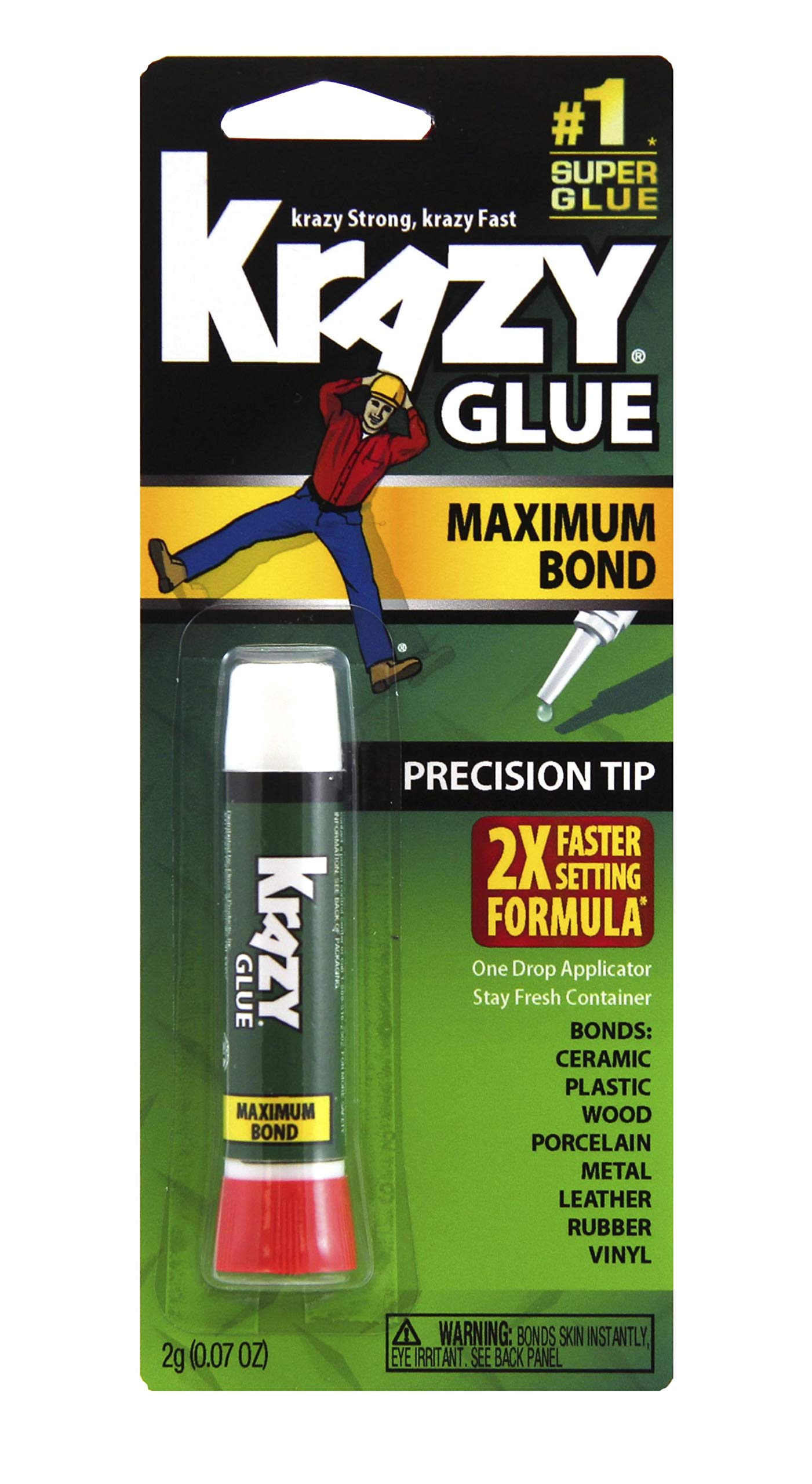 - Krazy Glue with Max Bond formula provides faster setting for extra-quick fixes